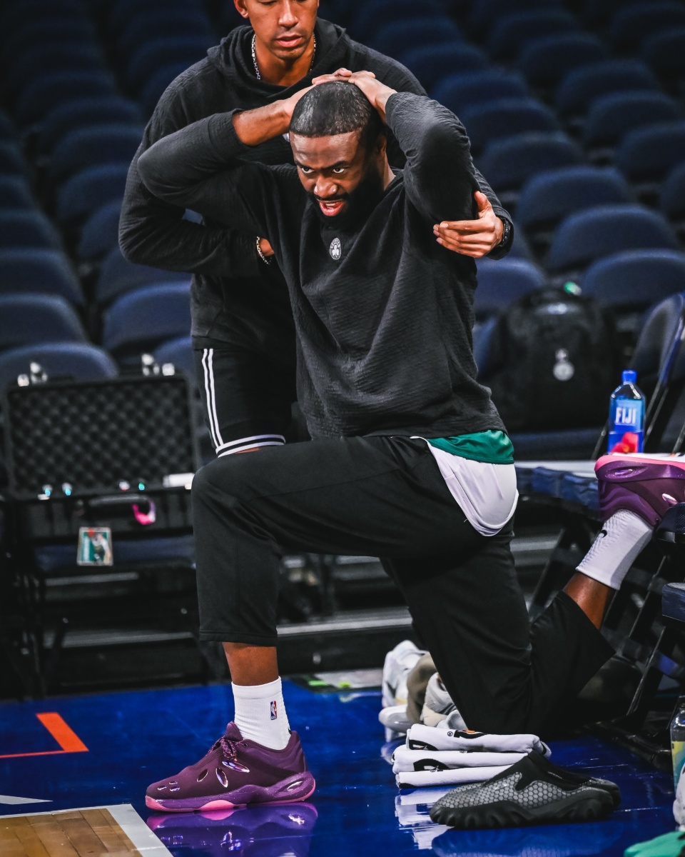 在此前凯尔特人对阵尼克斯和活塞的比赛中,杰伦-布朗头上的发际线粉被蹭掉了,而且蹭到了阿努诺比和霍兰的球衣上,杰伦-布朗使用发际线粉引热议,美媒调侃:NBA要在对阵凯尔特人时禁穿浅色球衣,这样才能保护大家不要受到杰伦-布朗那像喷漆一样的发际线的影响。